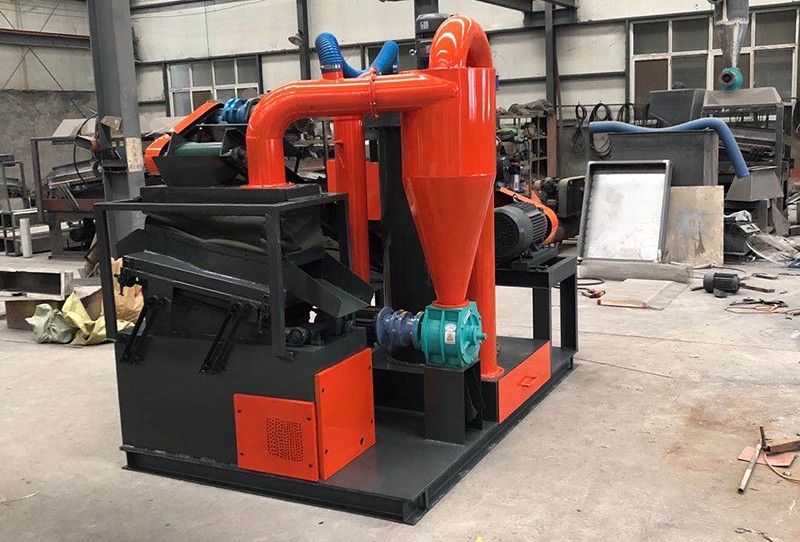 3.比重分選作為銅米、塑料分選的重要部分采用意大利氣流懸浮分選工藝,震動頻率與物料懸浮送風裝置皆可根據不同物料進行精準調節。